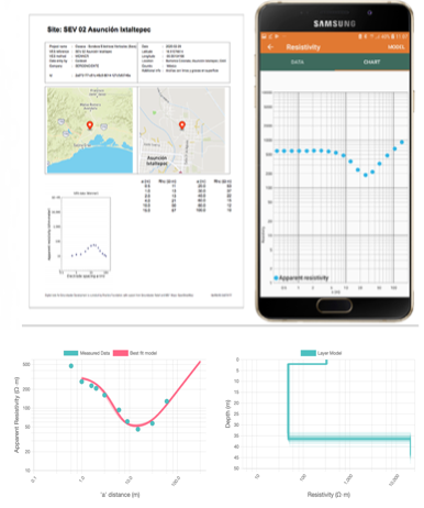 Capture resistivity measurements and receive your data in Excel and PDF, including an interpretation model. Analyse VES data in the online dashboard.